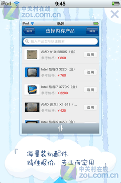 2、挑選硬件:在app的硬件庫(kù)中選擇您喜歡的CPU、顯卡、內(nèi)存、硬盤等。