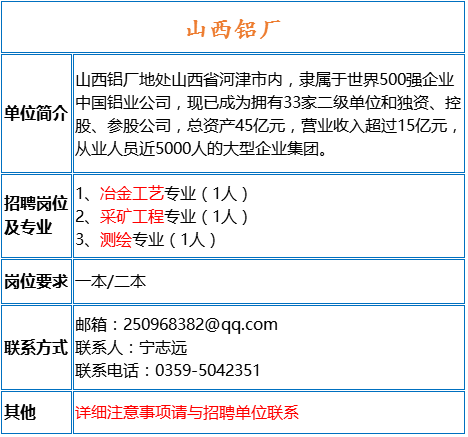 我們期待著您的加入,共同為鋁廠的明天添磚加瓦,注:本文所述招聘信息僅供參考,具體職位、要求和流程可能因?qū)嶋H情況而有所調(diào)整,求職者在實(shí)際申請(qǐng)過程中,請(qǐng)仔細(xì)閱讀并遵循我們的招聘流程和要求。
