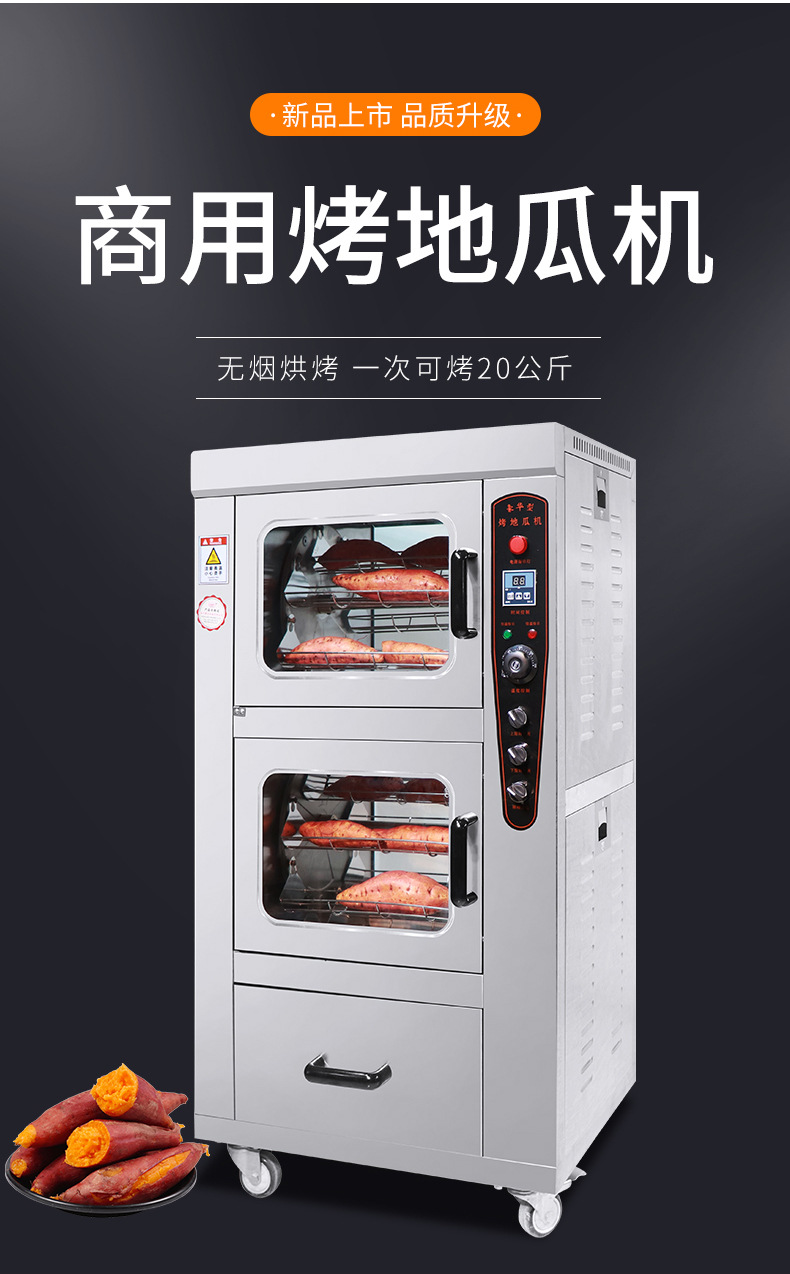 2、烤制效果更加出色:與傳統(tǒng)烤制方式相比,最新烤地瓜機烤制出的地瓜更加均勻、色澤金黃、口感更佳,其獨特的烤制模式能夠保留地瓜的營養(yǎng)成分,使地瓜更加美味健康。